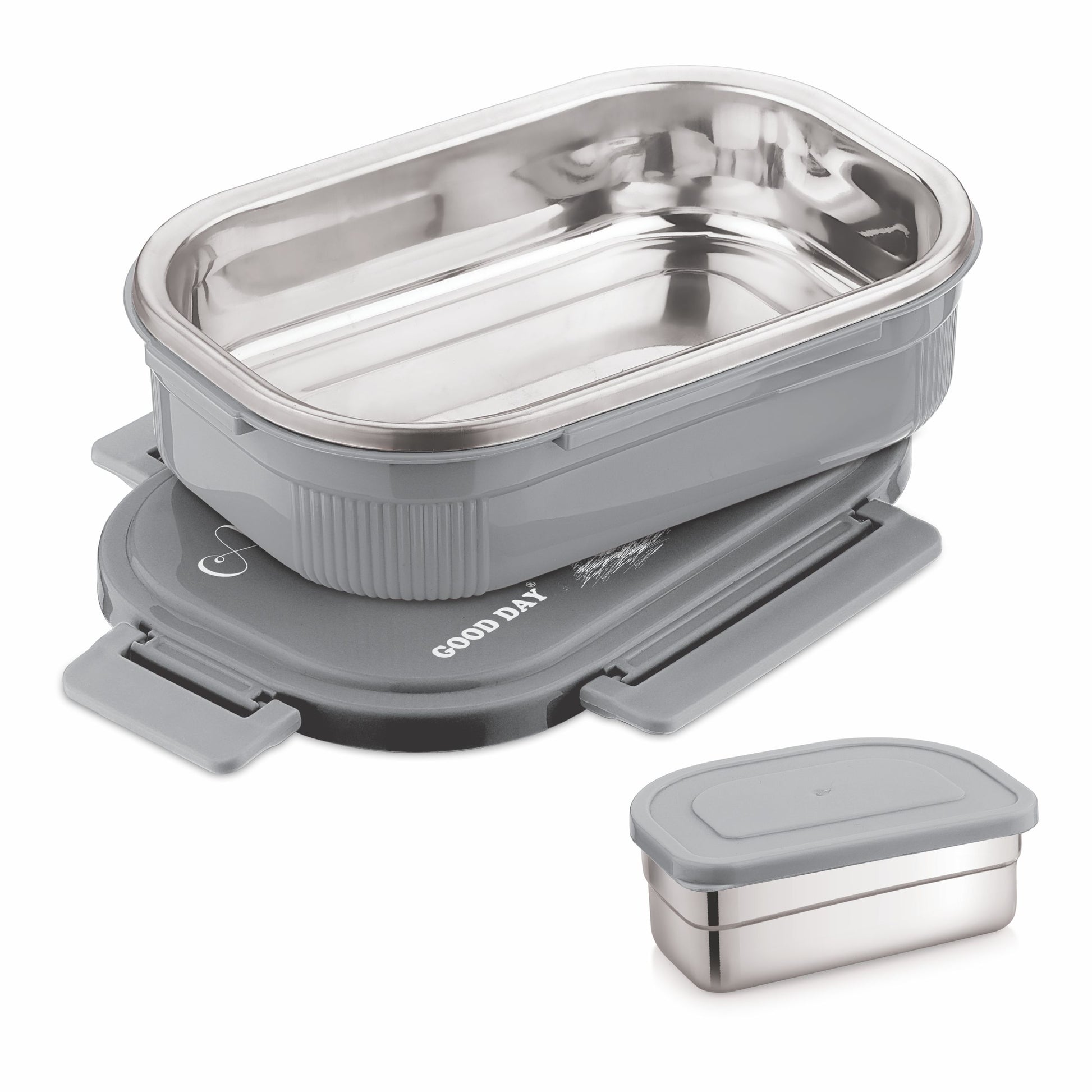 - • Smaller Steel Container with air tight plastic lid