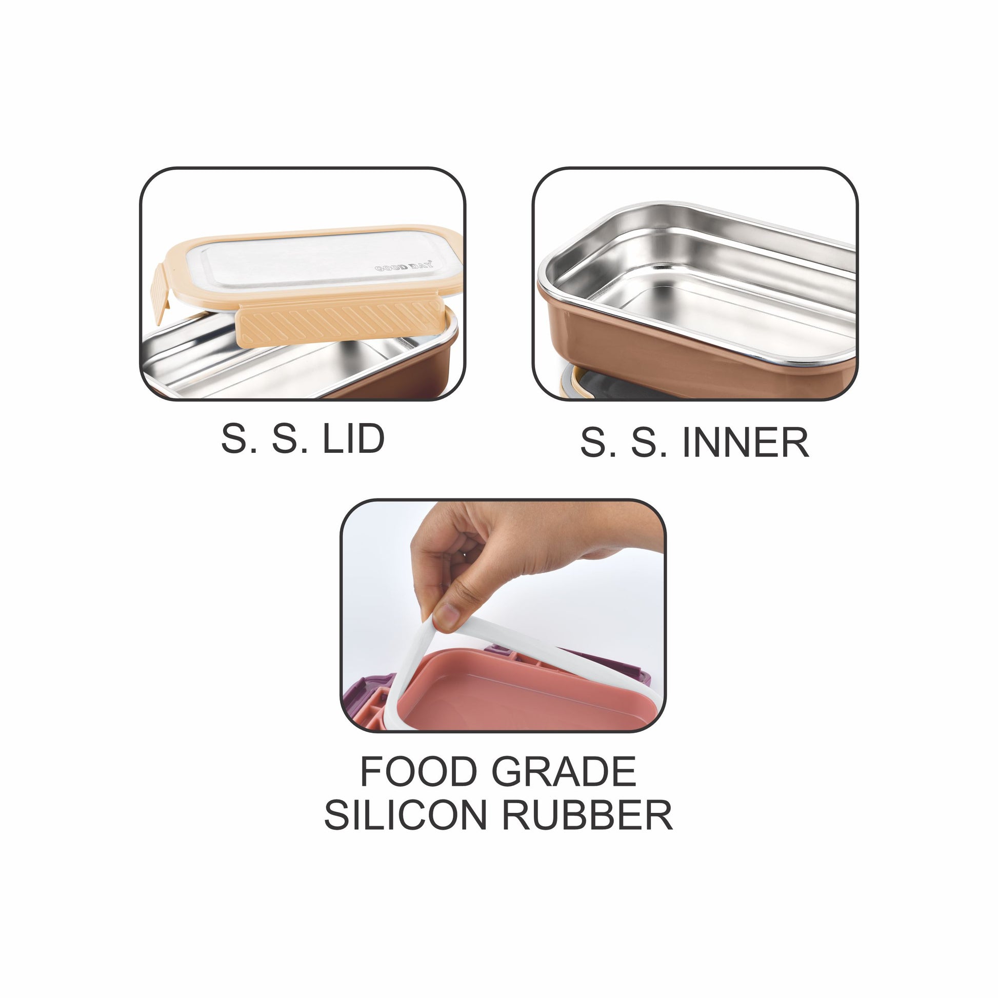 - • To carry Rice pulao, Snacks, Salads, Fruits in the Big S. S. Container & semi dry liquids like Sāmbhar, dal & Sauces in small container.