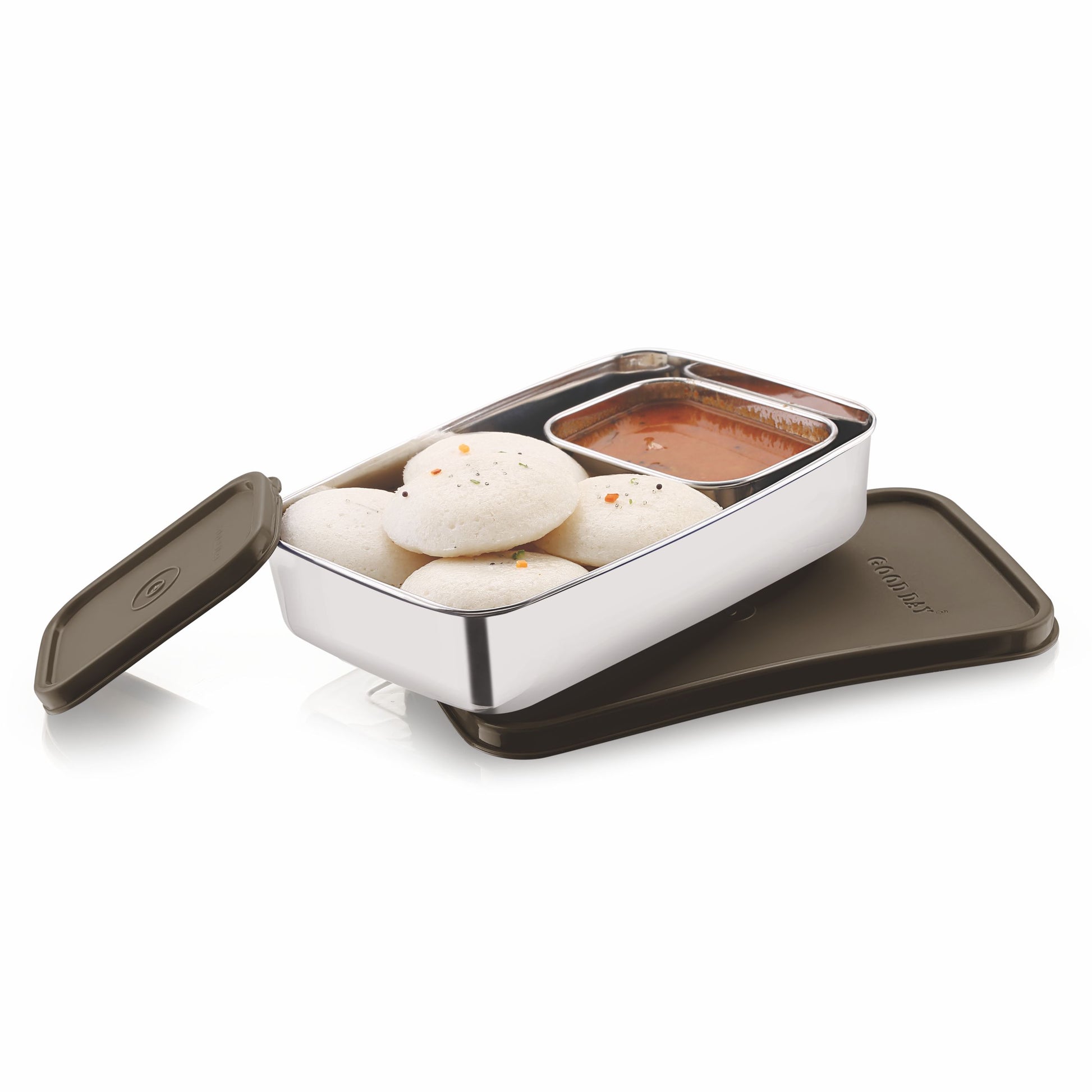 • To carry Rice pulao, Snacks, Salads, Fruits in the Big S S Container & semi dry liquids like Sāmbhar, dal & Sauces in small container.
